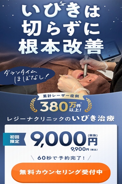 夜になると夫から「うるさい」と言われ、寝室を別にすることも…。試しにレーザー治療を受けたら、明らかに音が小さくなり今では同じベッドで安心して眠れています。痛みもなく、もっと早く受ければよかったです。
