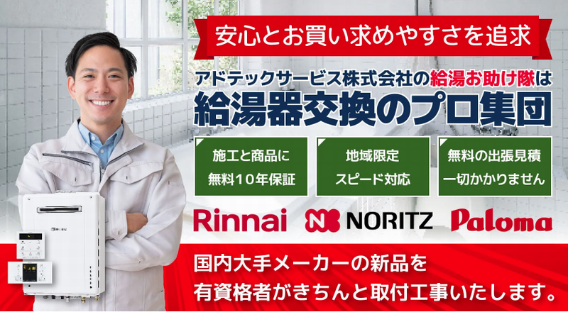 そこで今回は、スピード対応、コスパ最強、10年保証が付くお得な給湯器専門業者をご紹介します。